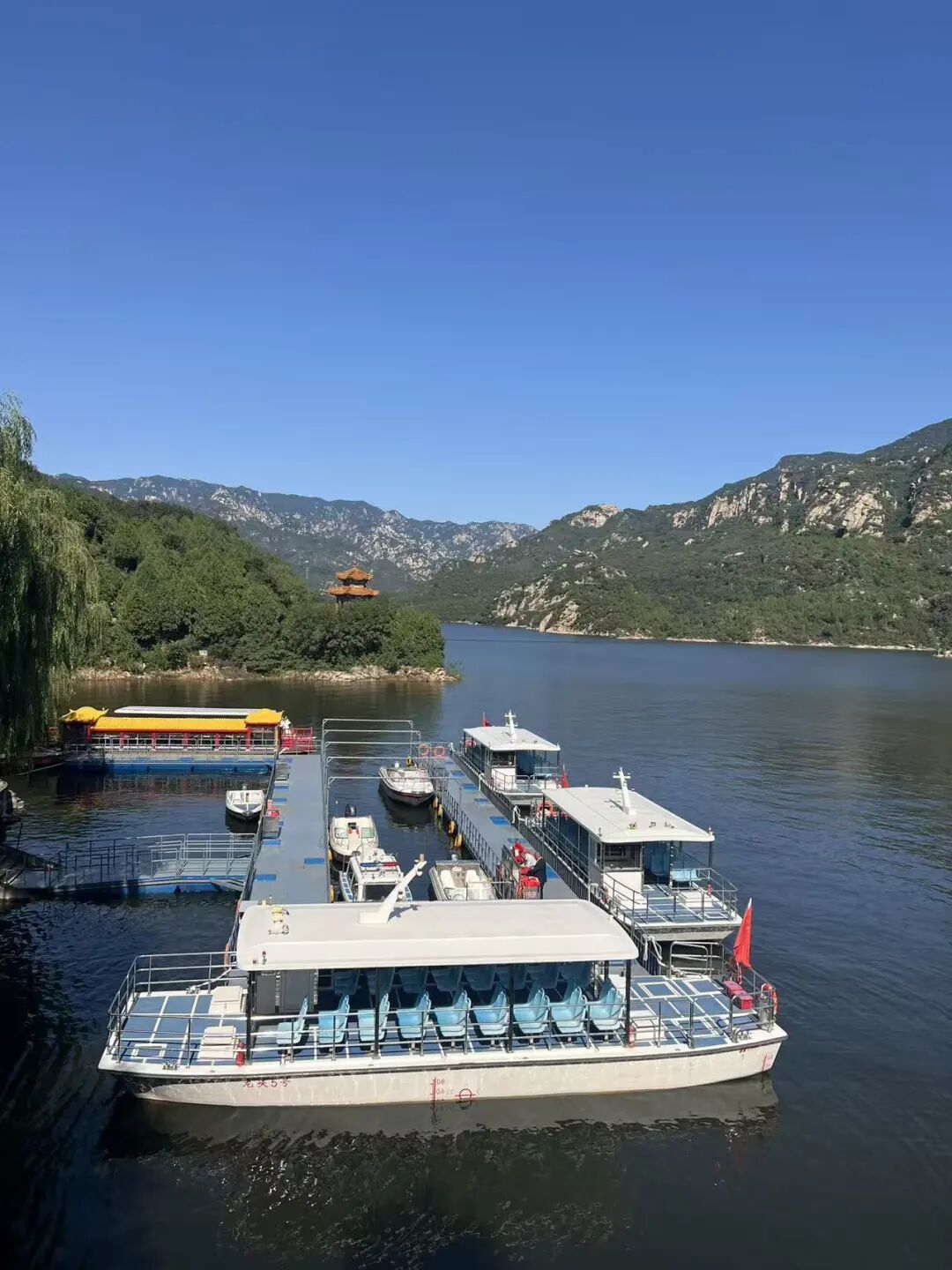 進(jìn)入景區(qū)后,所有干部職工乘著游船緩緩前行。湖面波光粼粼,兩岸青山連綿起伏,仿佛一幅流動(dòng)的山水長(zhǎng)卷在眼前徐徐展開。大家沉醉于這如詩如畫的美景之中,不時(shí)拿出手機(jī)記錄。游船結(jié)束后,大家有的悠然漫步,穿梭在山水之間,駐足欣賞湖中的倒影,聆聽鳥兒的歡歌,盡情享受著大自然的寧靜與美好;有的則選擇攀登古長(zhǎng)城,沿著石階一步步向上,每一步都仿佛與歷史對(duì)話。攀登途中,大家相互鼓勵(lì)、相互扶持,共同克服陡坡與臺(tái)階的考驗(yàn)。當(dāng)成功登頂長(zhǎng)城最高點(diǎn)玉皇臺(tái),俯瞰著壯麗的景色時(shí),成就感油然而生。大家紛紛合影留念,將這難忘的時(shí)刻永遠(yuǎn)定格。